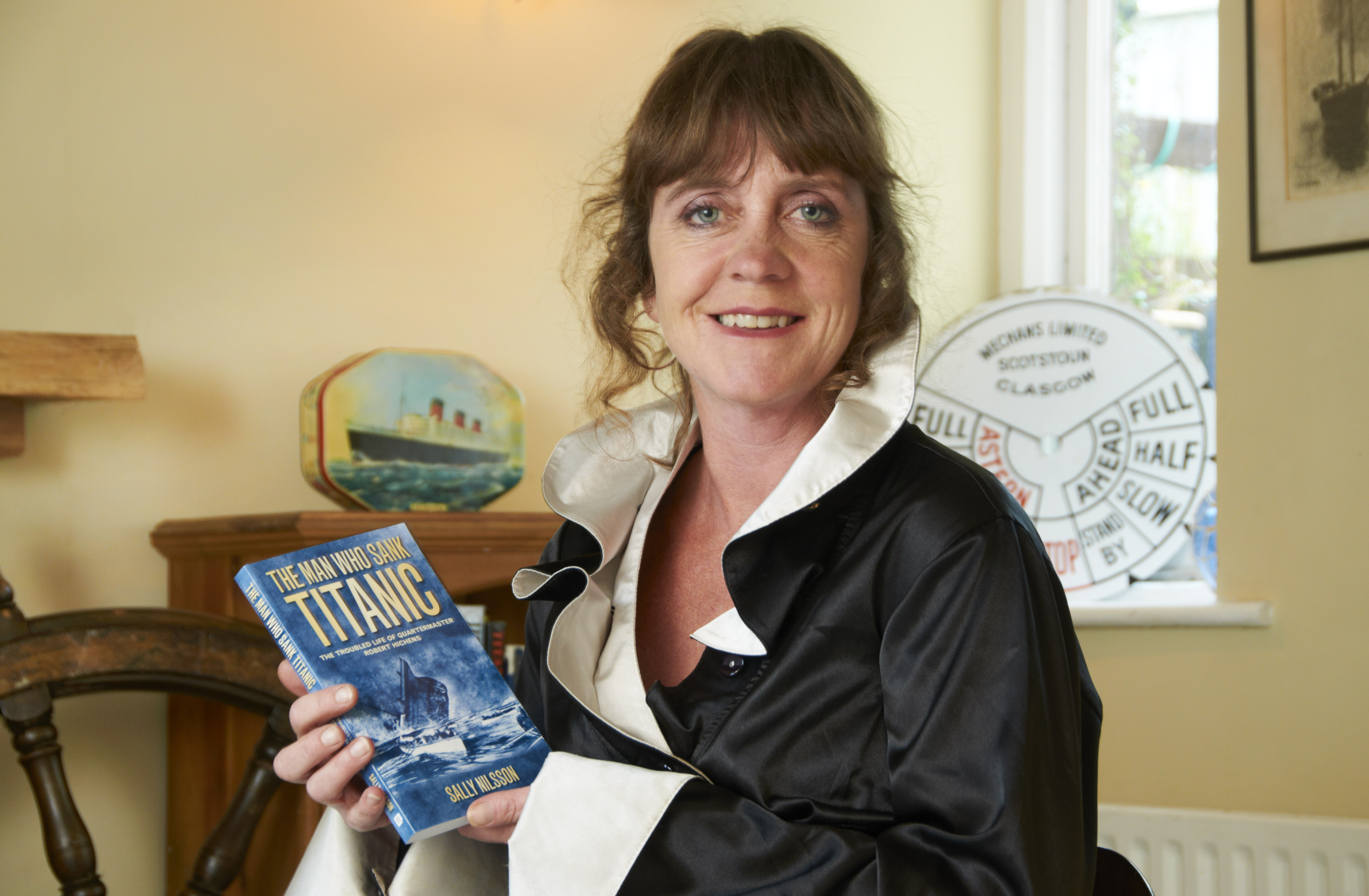 Sally Nilsson is the great-granddaughter of Quartermaster Robert Hichens who was at the wheel of Titanic at the time of collision and under the command of First Officer Murdoch who was officer of the watch. According to her Amazon biography Nilsson "spent most of her career working in publishing and exhibition management, and until recently, ran her own taxi company in Surrey. She was born in Southampton then moved to Reigate, where she has lived for the past thirty years. Sally lives with her Swedish husband Paul and boys Hugo and Henry." (Amazon)