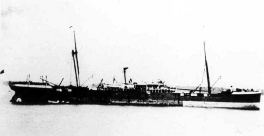 The SS Benin, aboard which Lightoller served as second mate on the African Mail Service run. It weighed 2,223 gross tons and was 109.13 m in length, 12.11 m in beam, 9.20 m in depth and 7.16 m in draft capable of 9.5 knots.
