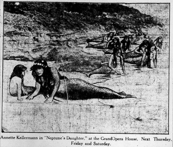 Mini Kalman appeared in Annette Kellerman's 1914 film "Neptune's Daughter" - possibly as a mermaid seen in the background of this promotional still. The film itself is largely lost. (Credit: https://www.imdb.com/)