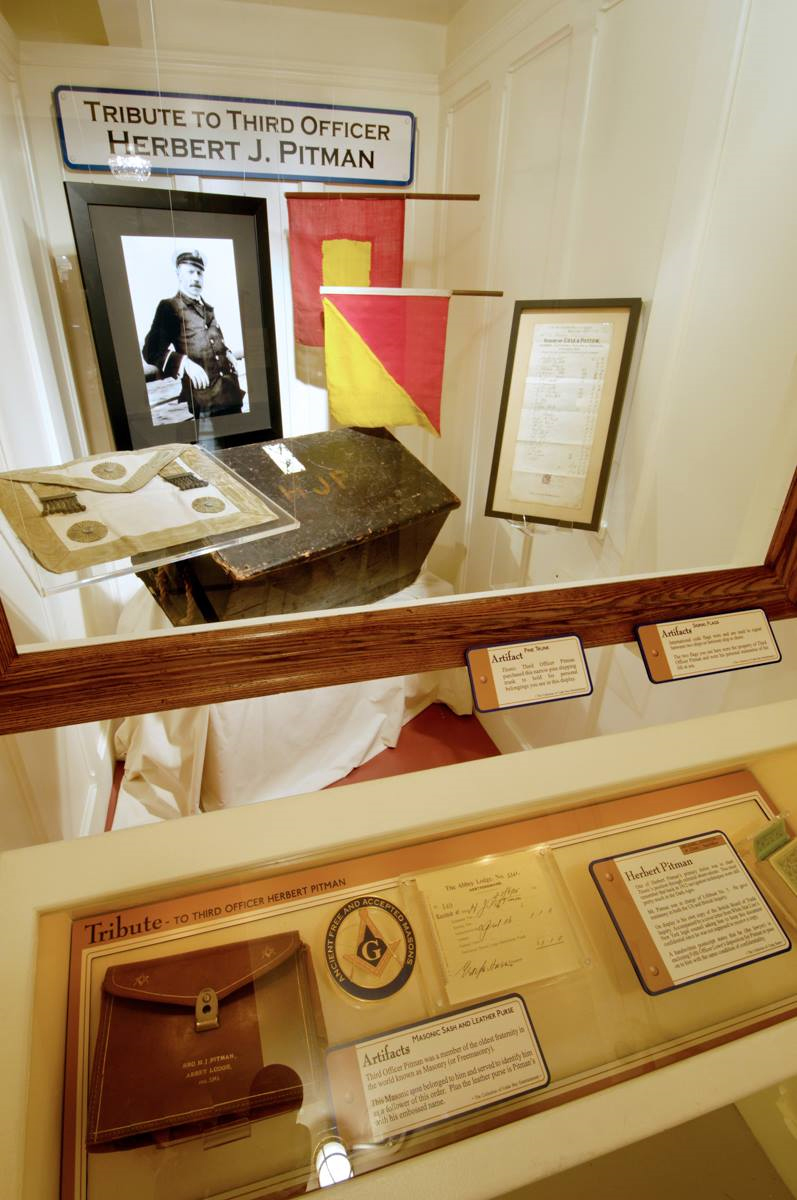A tribute to Third Officer Herbert J. Pitman has appeared at the Titanic Museum in Branson and Pigeon Forge, with an emphasis on Pitman's freemason artifacts, including his Masonic sash and leather purse, along with his own personal copy of the Board of Trade Inquiry. The exhibit consists of items primarily from the collection of Craig Sopin and was on display in 2012.
