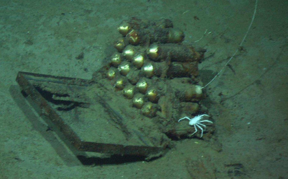 Box of Socket Distress Signals found at the Titanic wreck site.