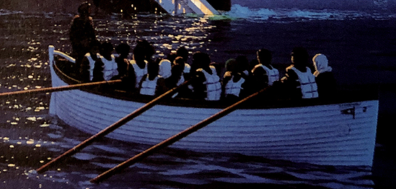 A close up on lifeboat no.2 in Ken Marschall's illustration.