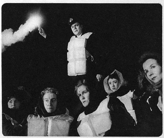 Jack Watling as Boxhall waving a flair in a lifeboat. (Illustrated London News 26 July 1958)