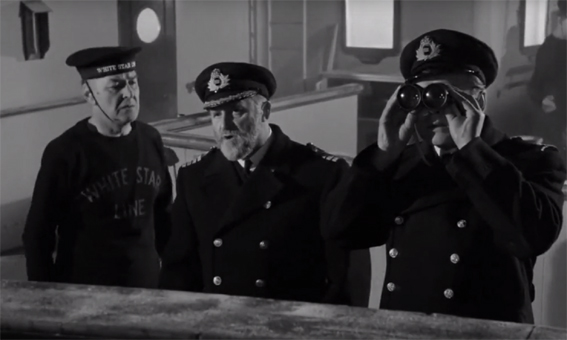 Jack Watling as Boxhall discussing the 'mystery ship'