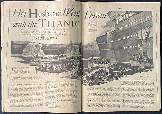 A copy of the Liberty Magazine dated 23rd April 1932 featuring an in depth account of the sinking by Mrs Harris, from the Lowe family archive put on auction in November 2020. (Henry Aldridge & Son Ltd)