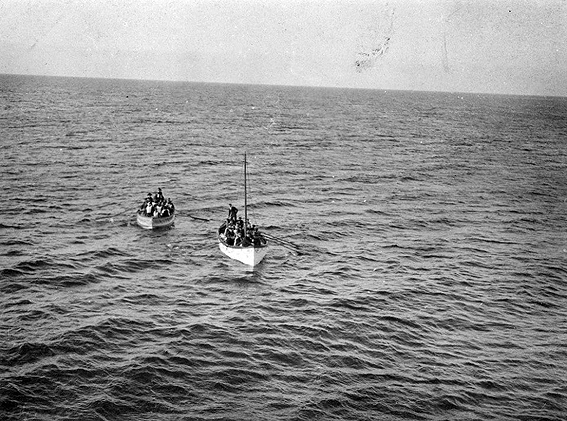 Lifeboat 14 as it approaches the Carpathia. It is the only