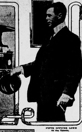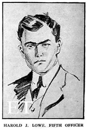 Lastly, there was Mr. Harold Godfrey Lowe, the fifth officer, quite a practical, resourceful, and unemotional person, who made the fair ladies in court shudder as, in the most matter-of-fact way, he described how his boat was propelled through masses of dead bodies, and how he ordered three of them to be turned over in the collapsible boat in which he found them, just to make sure they were dead. But this was the officer who collected five of the ship's boats together, transferred the passengers in his own into the other four, and then set out in quest of survivors after the liner had sunk.(The Daily Telegraph, London, 23 May 1912)