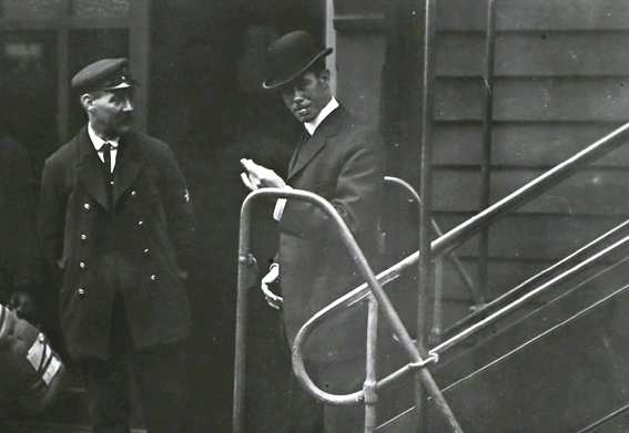 Harold Lowe arrives in Liverpool. Getty Images. (Click image to enlarge)