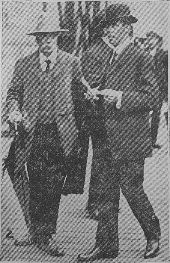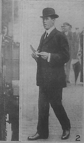 The paper in his hand is possibly the summons he received to attend the