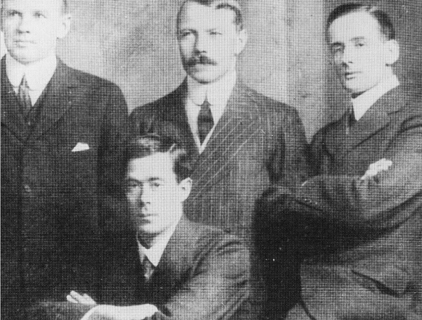 The four surviving Titanic officers, in a signed studio photograph, on their return to England. It is one of two only known photographs of the officers together. From left: Fifth officer Lowe, Third officer Pitman, Second officer Lightoller and Fourth officer Boxhall. (Click image to enlarge)