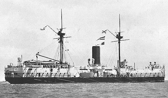 The HMS Imperieuse was the lead ship of her class of two armoured cruisers built for the Royal Navy in the 1880s, having been completed in September 1886. The steel-hulled steam ship was fitted with a ram and the hull was sheathed in teak which was covered in copper to reduce biofouling. The crew numbered approximately 555 officers and other ranks. The ship was initially brig-rigged with two masts, but these were replaced by a single military mast amidships shortly after completion as she proved to have very poor sailing qualities during her trials.