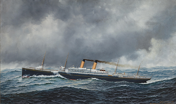 "The R.M.S. Cedric at sea, 1906" by Antonio Jacobson, (1850 - 1921).