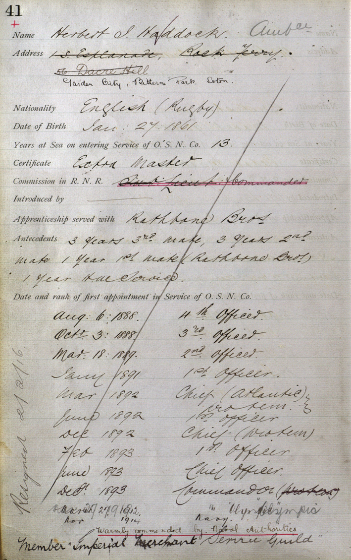 Haddock's White Star Line service record.